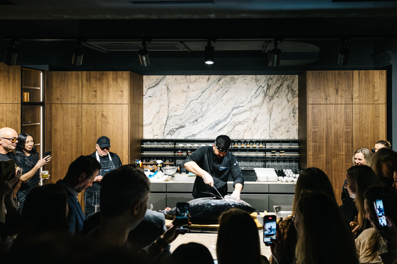 Программа вечера была насыщенной и разнообразной: гастрономическое шоу по разделке тунца и устричный бар со свежими устрицами. Музыкальное сопровождение обеспечил диджей Андрей Захаров, а кульминацией вечера стало выступление известных артистов Дарьи Азиатцевой и Кирилла Спирса из кабаре Crave.